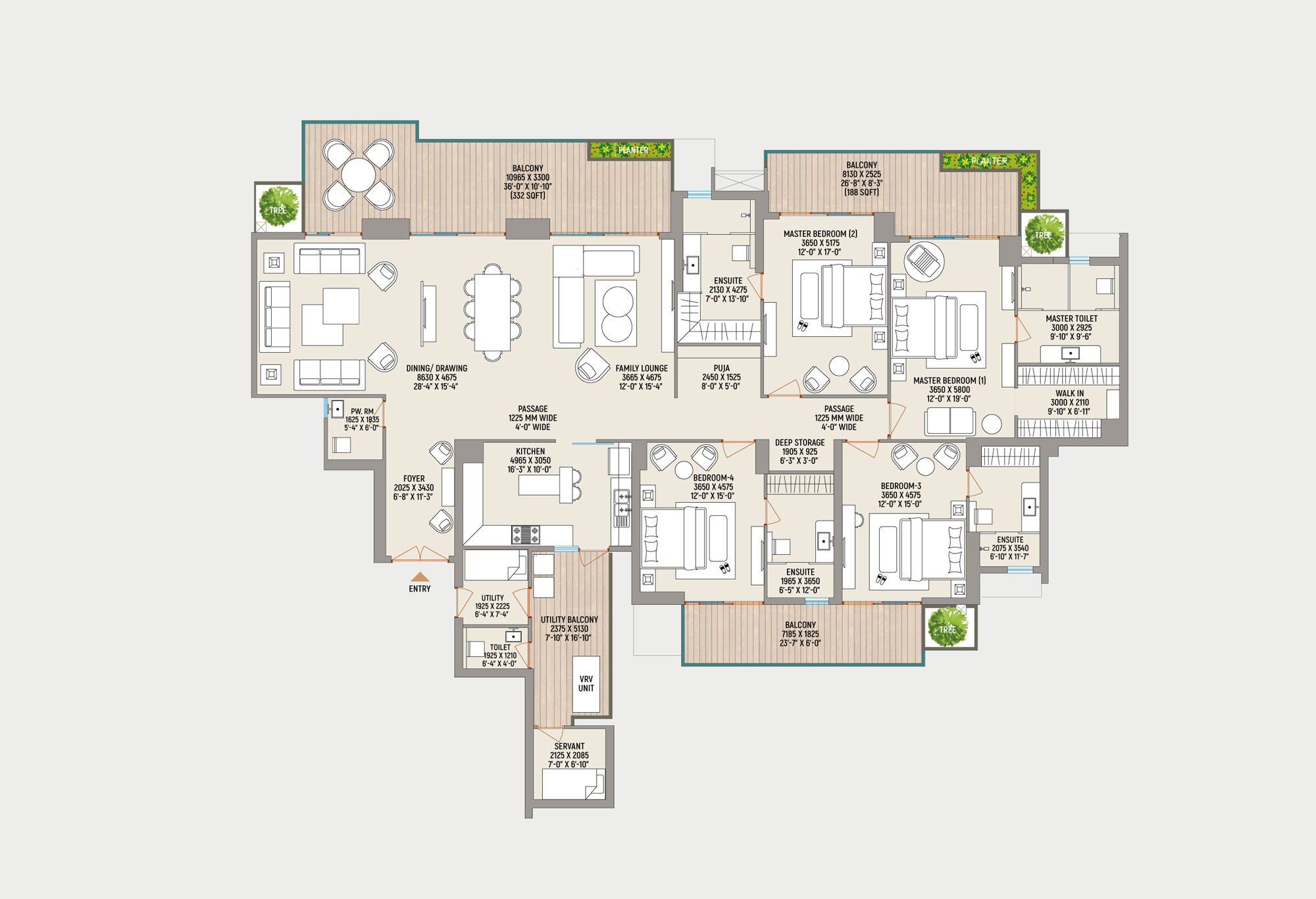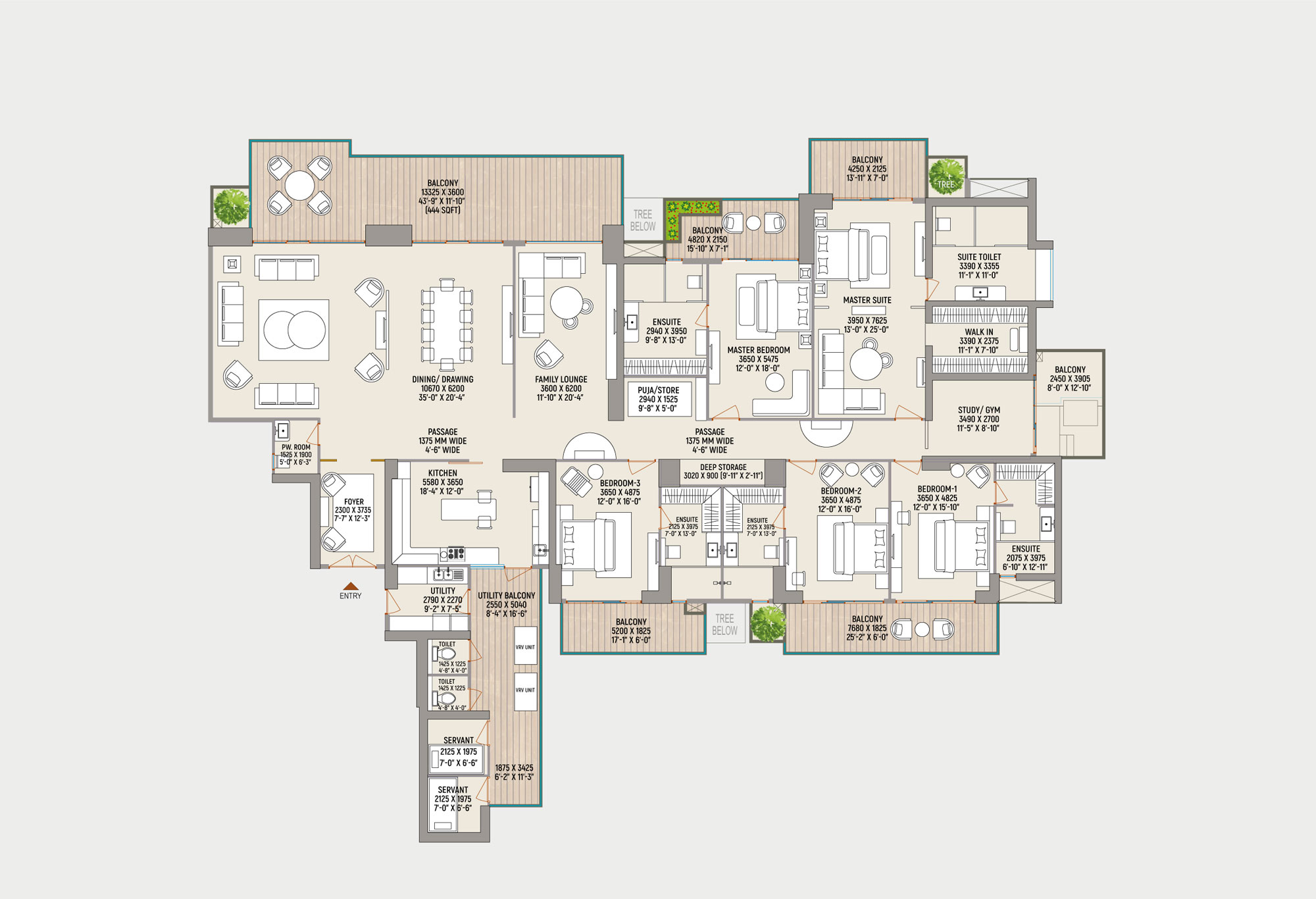 + Family Lounge + 5 Toilets + 4 Balconies