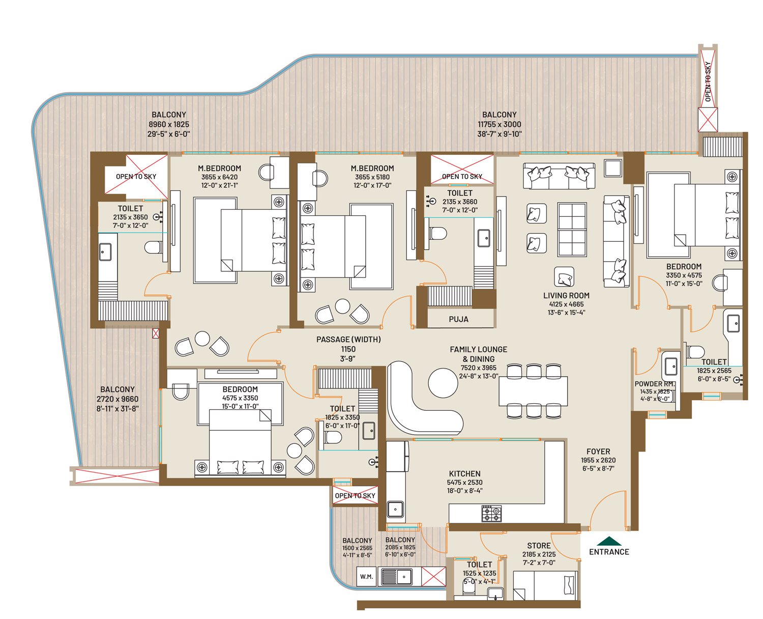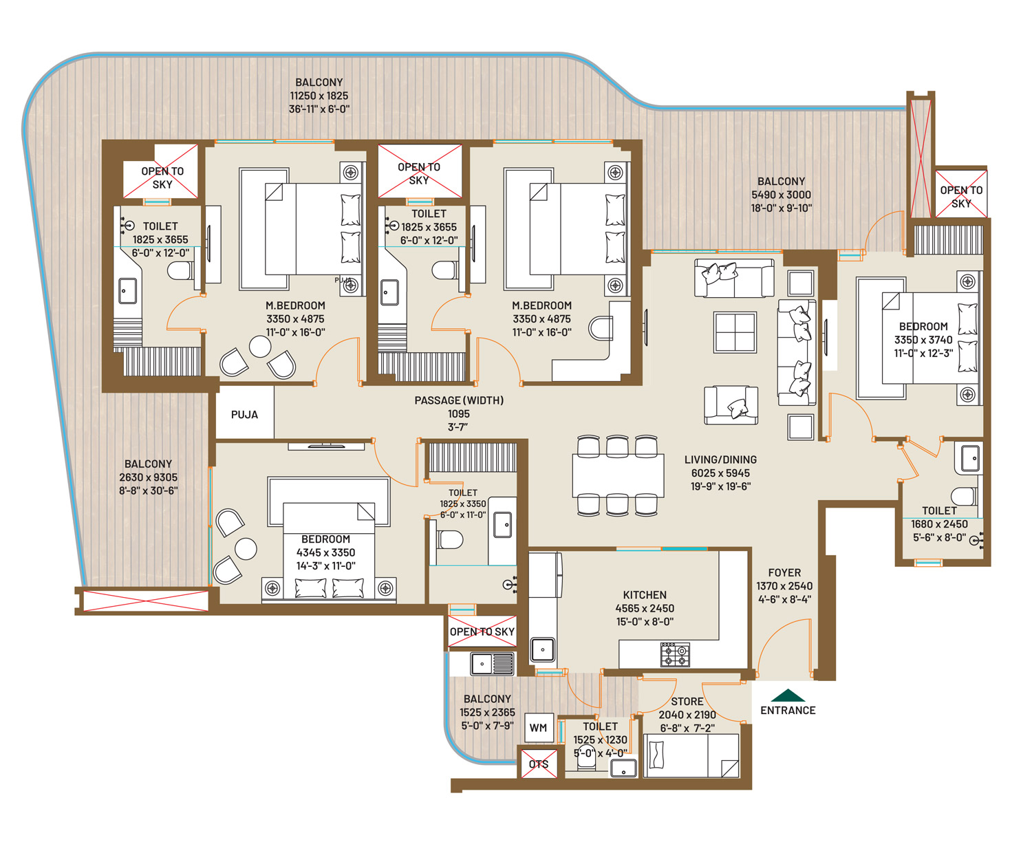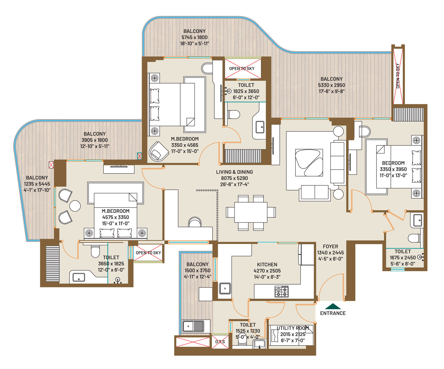 BALCONY: 864.51 SQ. FT. (80.31 SQ. MT.)